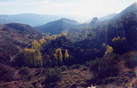 El descenso continúa y lo que inicialmente era una vereda se convertirá en una pista poco antes de llegar al río. Una vez cruzado este, subiremos de forma ininterrumpida por la pista hasta alcanzar la carretera por la que seguiremos, girando a la izquierda, en este punto y en el desvío de Cádiar, hasta regresar al pueblo.